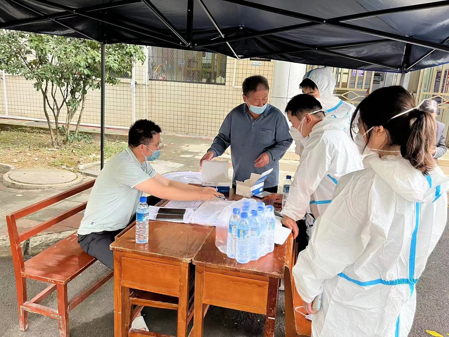 “倾情守护,坚守一线展风采”。疫情阻击战的号角吹响以来,公司绝大多数行政人员只能居家办公,而也有少数孤勇者一路逆行,舍小家为大家,奔赴校园,在非常时刻展现了非凡担当。公司党委副书记张海文、副经理吴家福、公司教师邹江河,三位老师一直在公司一线坚守岗位,负责一小区八号楼413名员工的核酸检测、抗原自测任务,走访寝室,召开员工班委座谈会深入员工。作为员工工作战线上的党员,人员紧缺,责任重大,他们在多个角色中切换,身体力行,连续奋战,留下了公司抗疫队伍中最美丽身影。