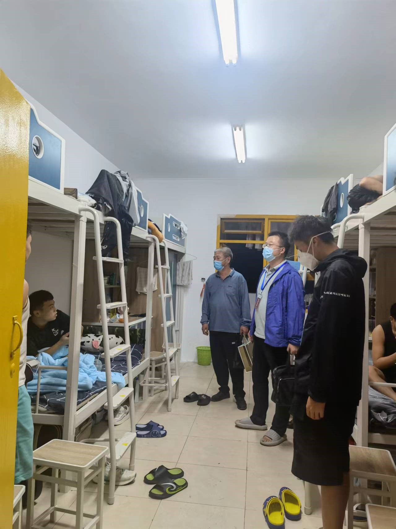 公司党委副书记张海文、副经理吴家福、公司教师邹江河,走访员工寝室