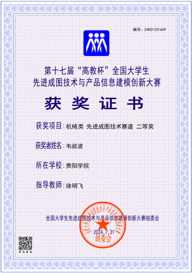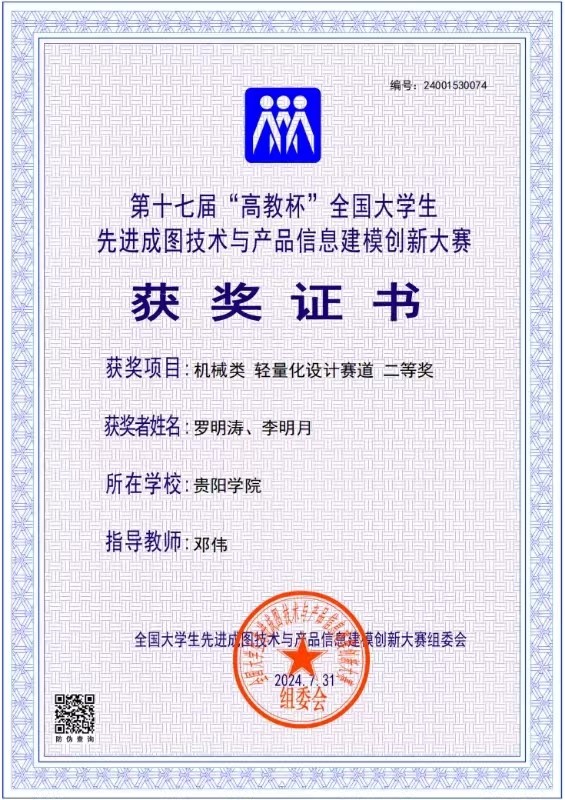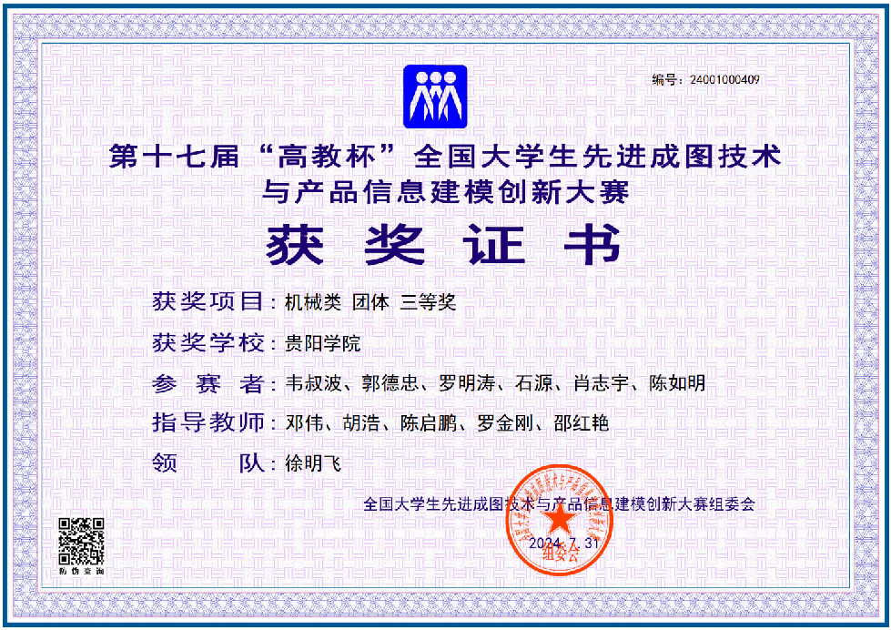 2024年7月29日,第十七届“高教杯”全国老员工先进成图技术与产品信息建模创新大赛决赛在贵州大学圆满落幕。williamhill英国官网参赛员工荣获一等奖1项、二等奖2项、三等奖3项,williamhill英国官网获机械类团体三等奖。