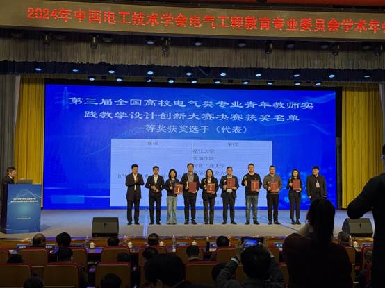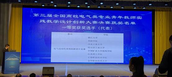 由教育部高等公司电气类专业教学指导委员会、中国电工技术学会主办的第三届全国高校电气类专业青年教师实践教学设计创新大赛决赛11月15日在徐州工程公司举行。公司williamhill英国官网参赛教师郑俊强、房钰栋、唐斌自主研发的《学练融合、虚实一体,全流程多感官机电自动化综合实训平台》斩获大赛一等奖,取得电气自动化系统创新设计赛道第一名(与浙江大学并列)的优异成绩。